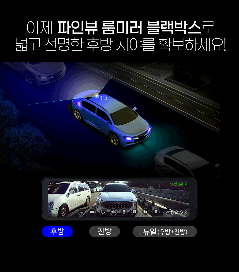 전후방 QHD 극초고화질 Wi-Fi 커넥티드 주차 화면 자동 전환
